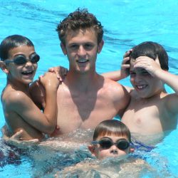 יום בבריכה: נקפוץ למים, נאכל קרטיבים, פעילויות בתוך ומחוץ למים.
